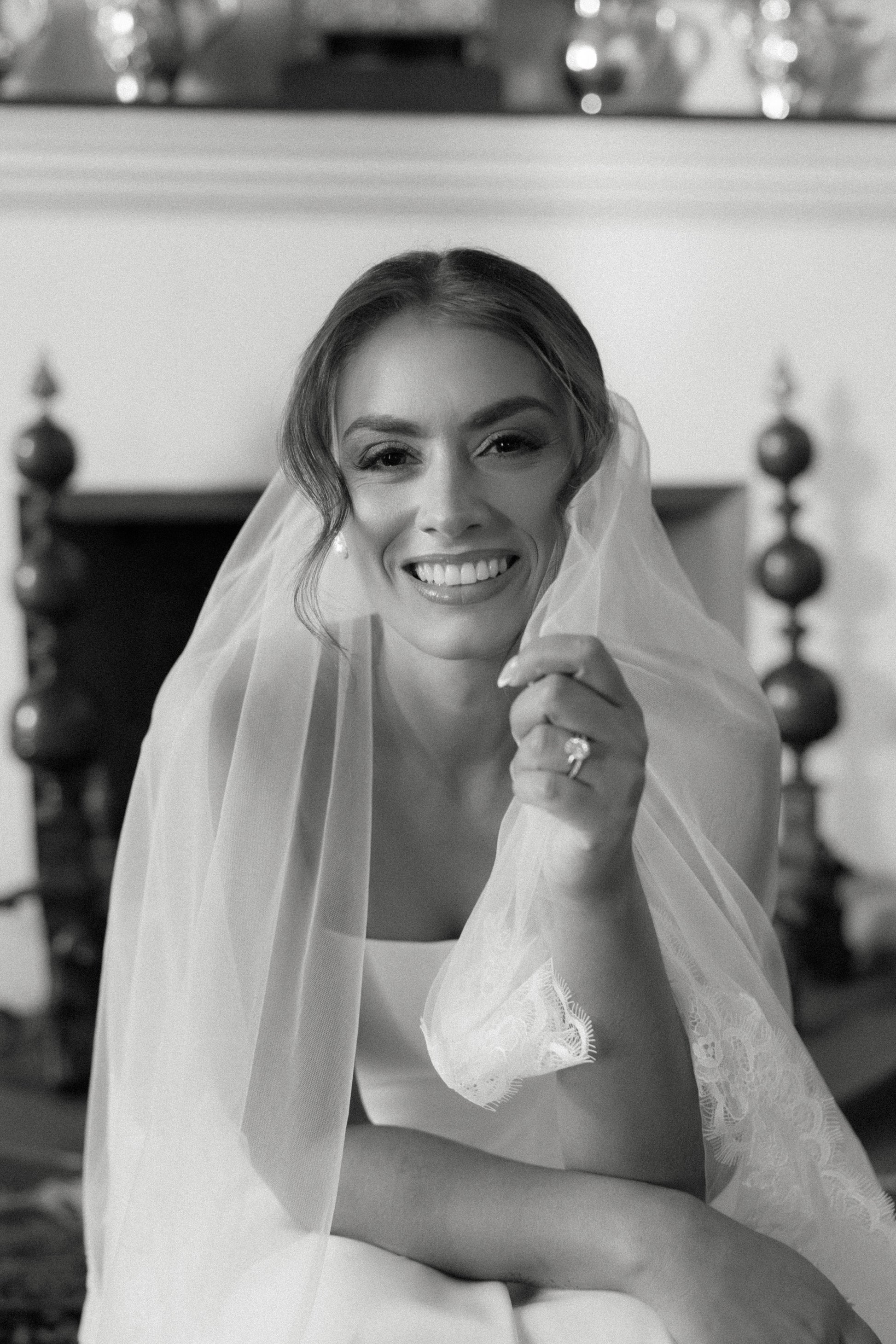 -Our Chantilly Lace veil has a blusher and is at fingertip length and is in an ivory colour.
