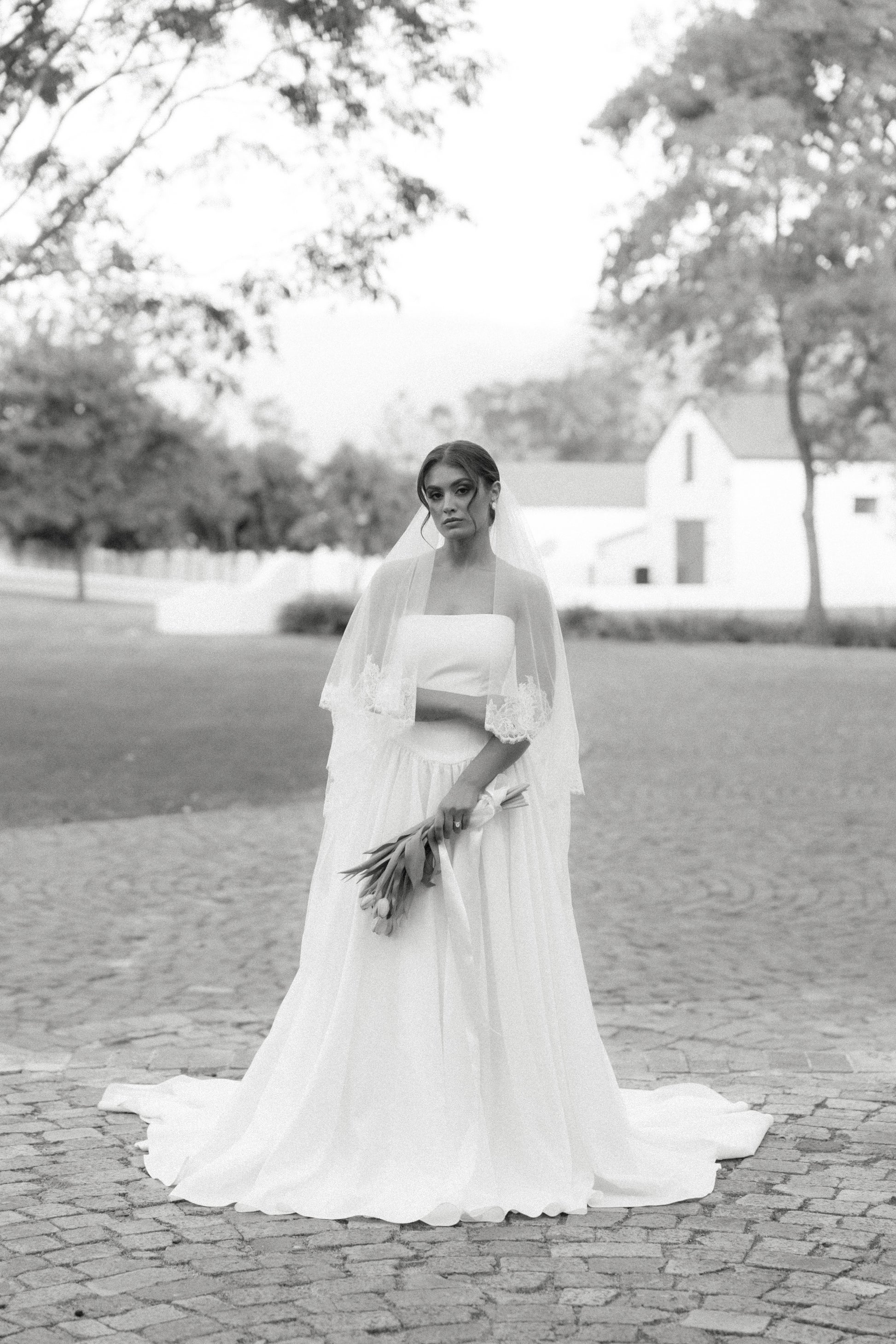 Vintage romance with a modern heart. This veil features delicate Chantilly lace trimming, bringing timeless beauty to any bridal look. Lightweight and elegant.