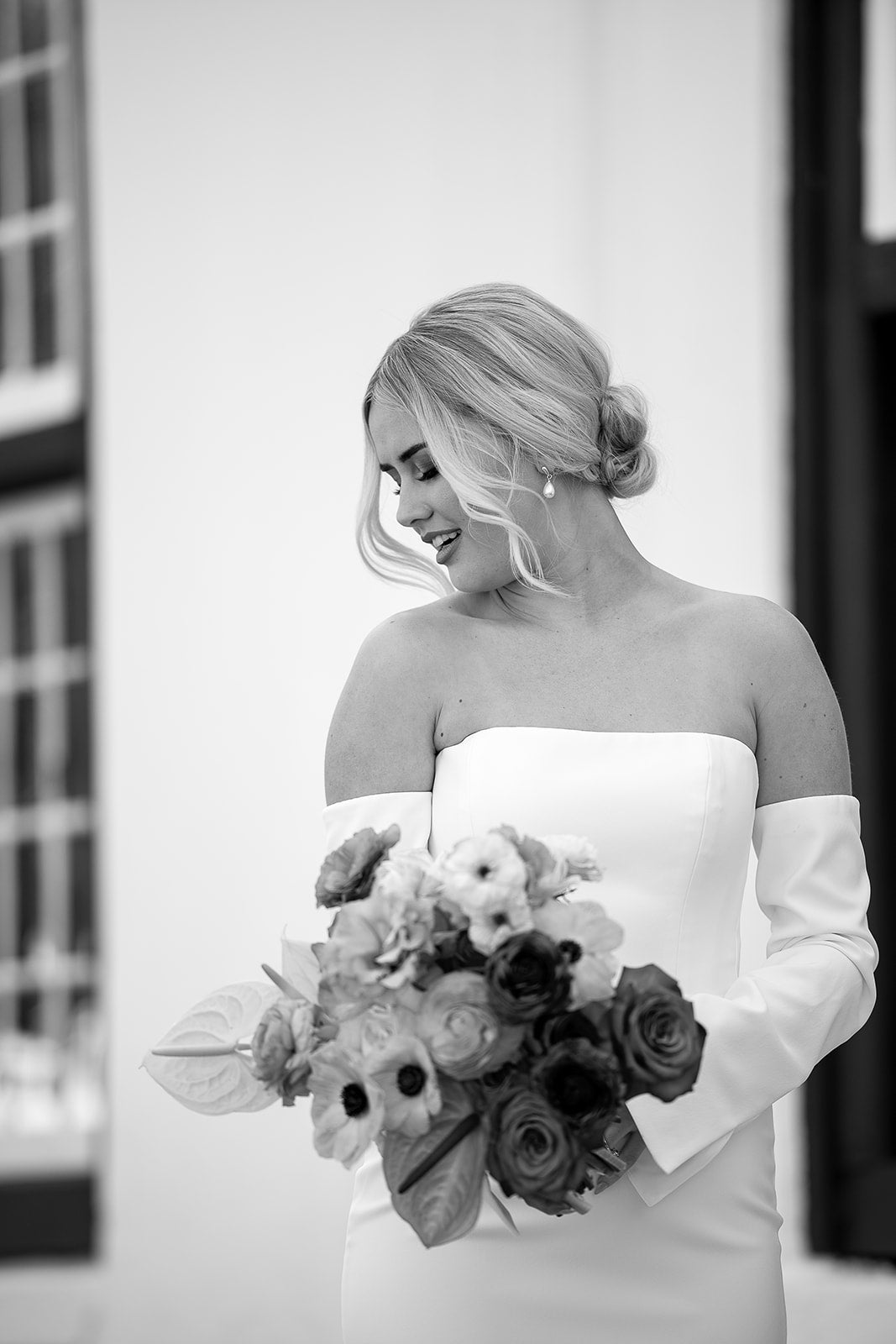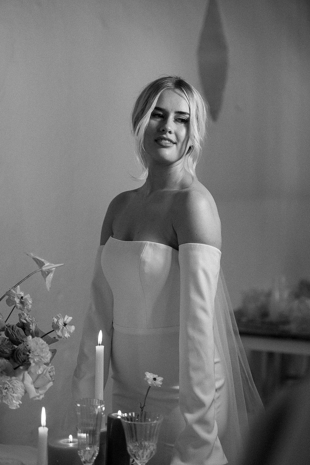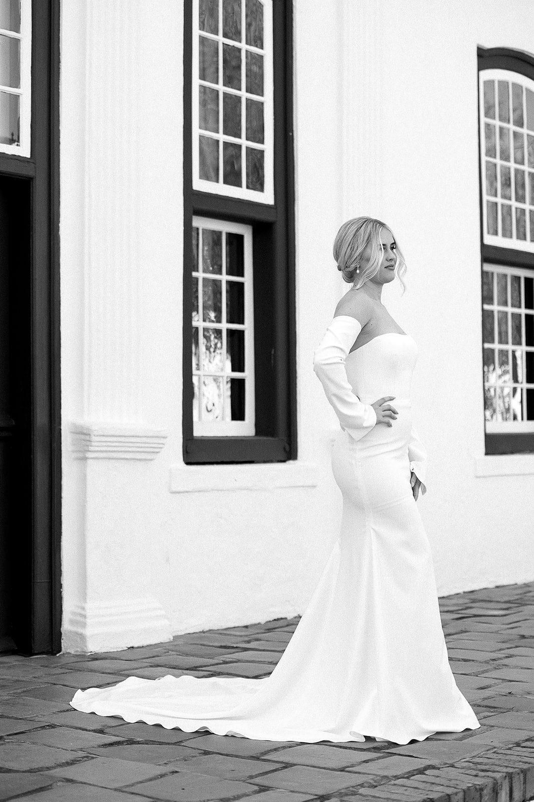 These sleeves blend beautifully with crepe dresses or add contrast to softer fabrics like tulle or chiffon. Perfect for a bold, contemporary look or creating contrast with a more textured gown.