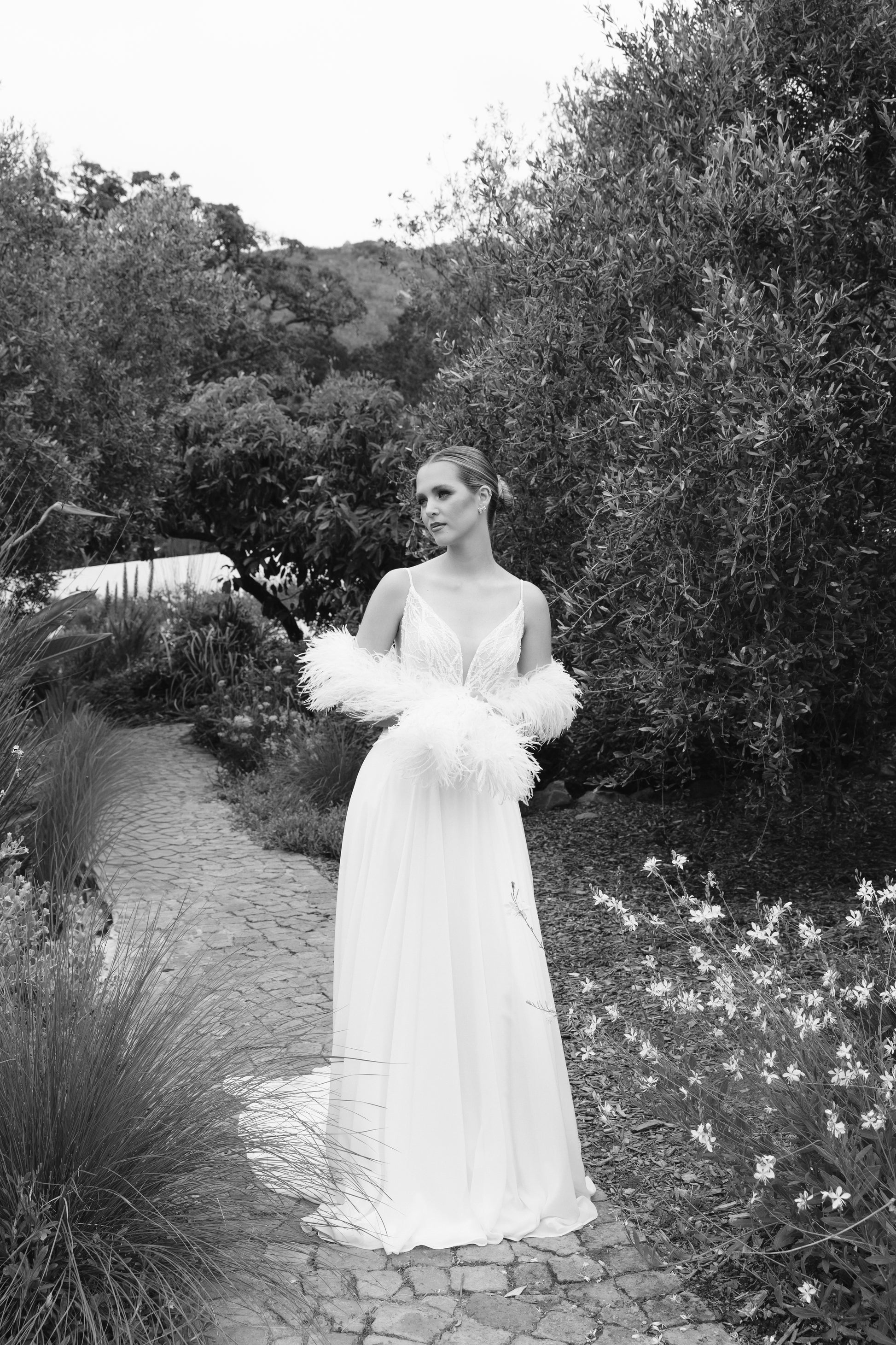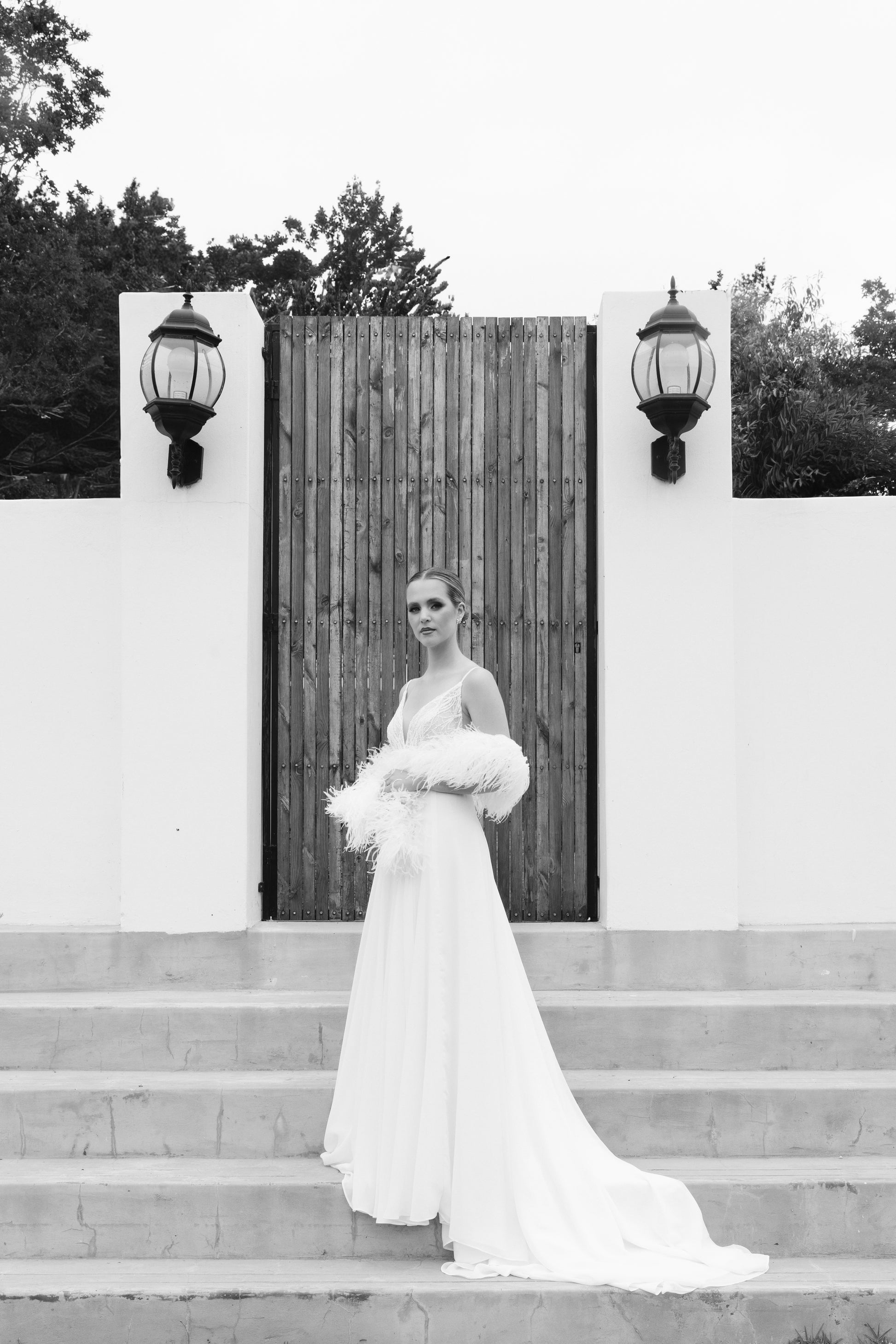 A soft, luxurious feather boa adding, effortless elegance to your bridal look. She is perfect for photos, pre-wedding moments or a touch of glam for the big day.