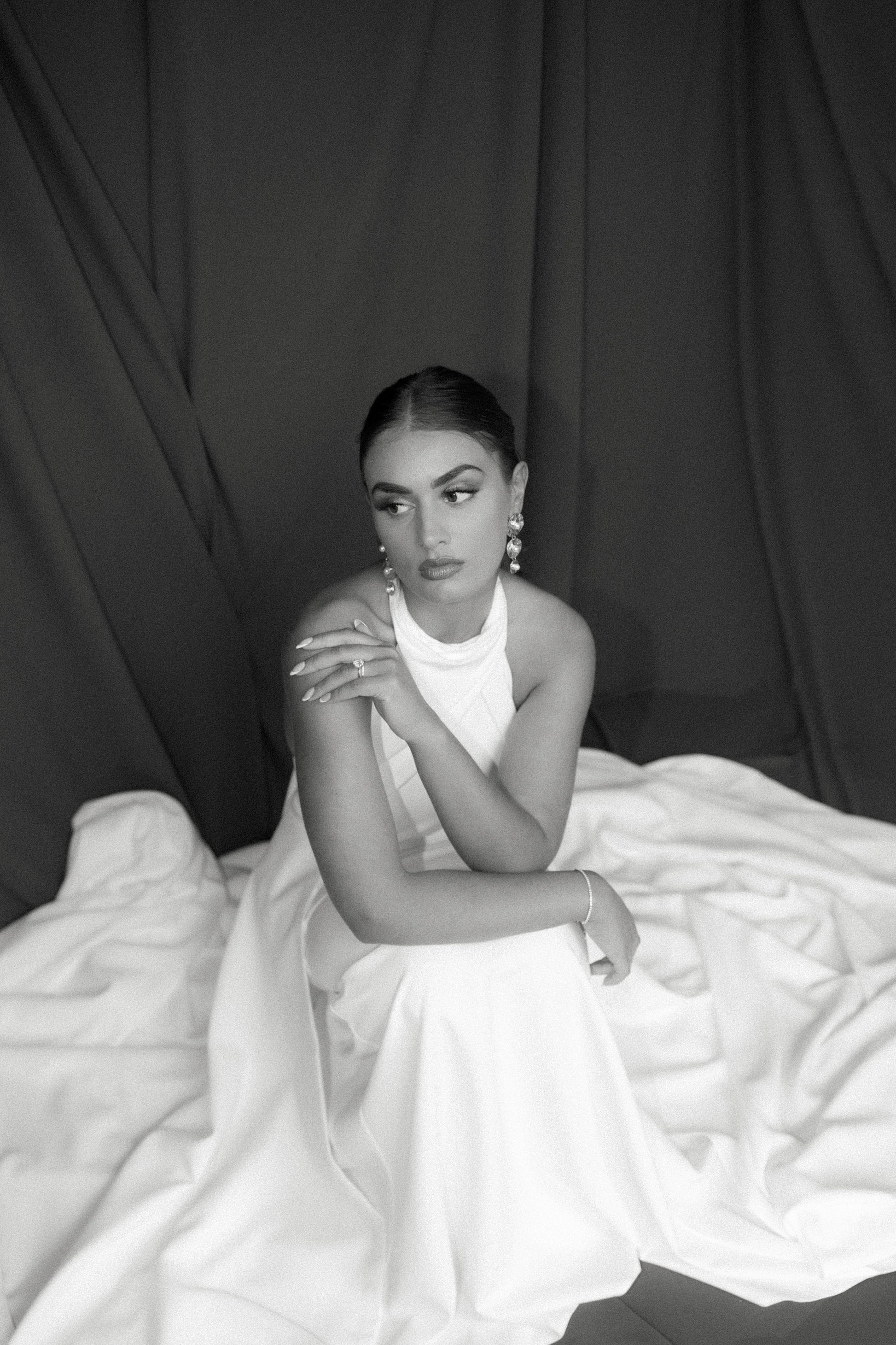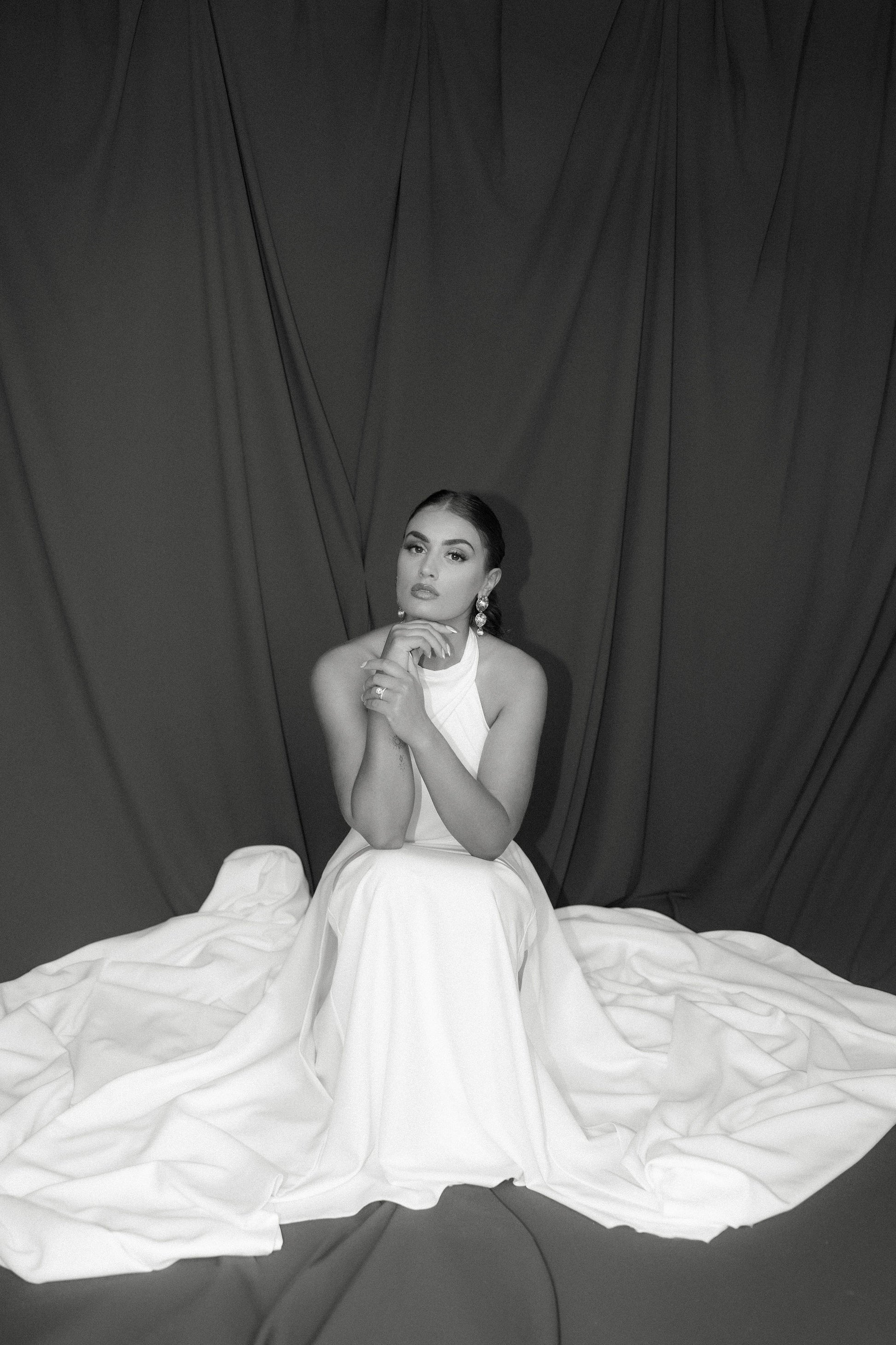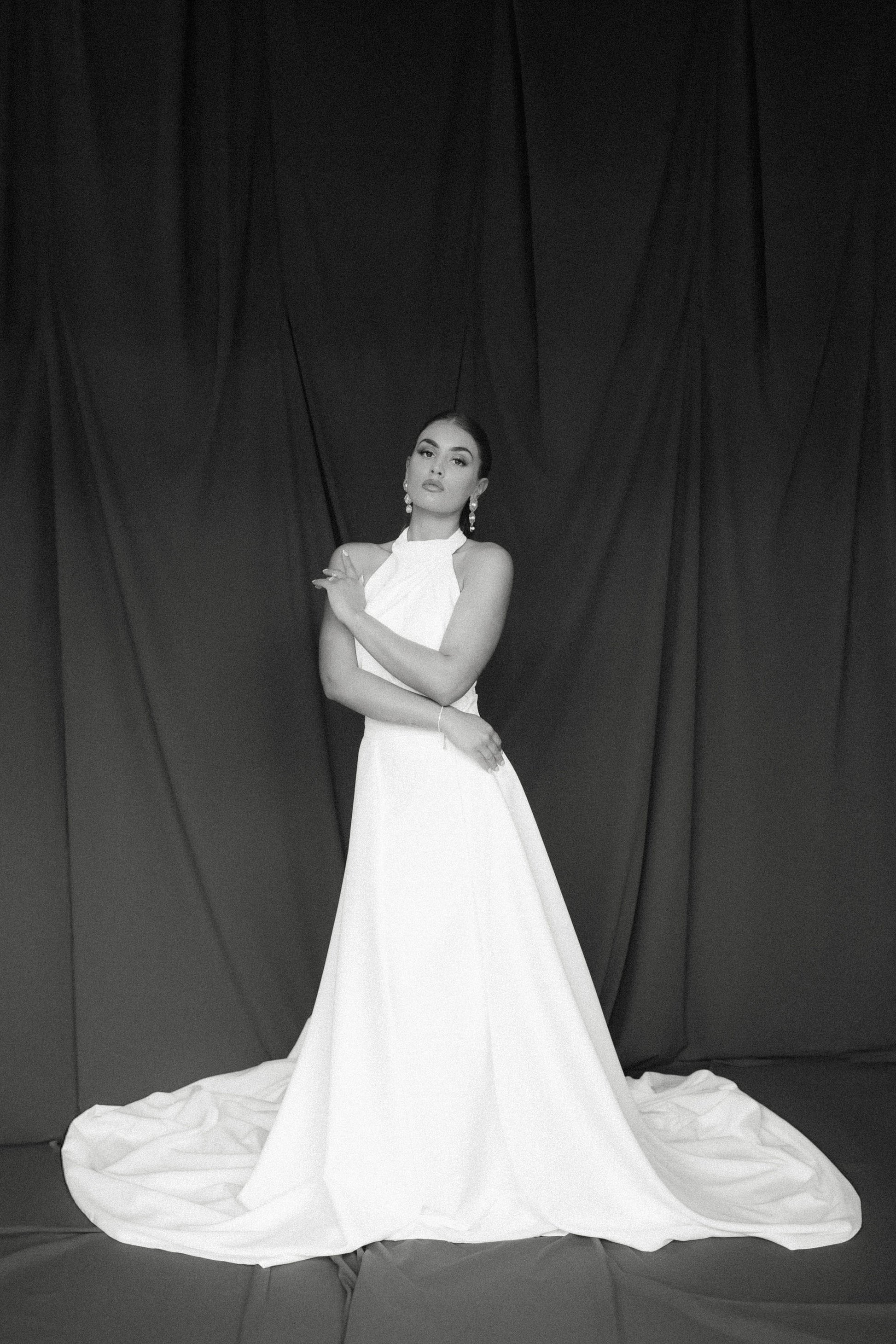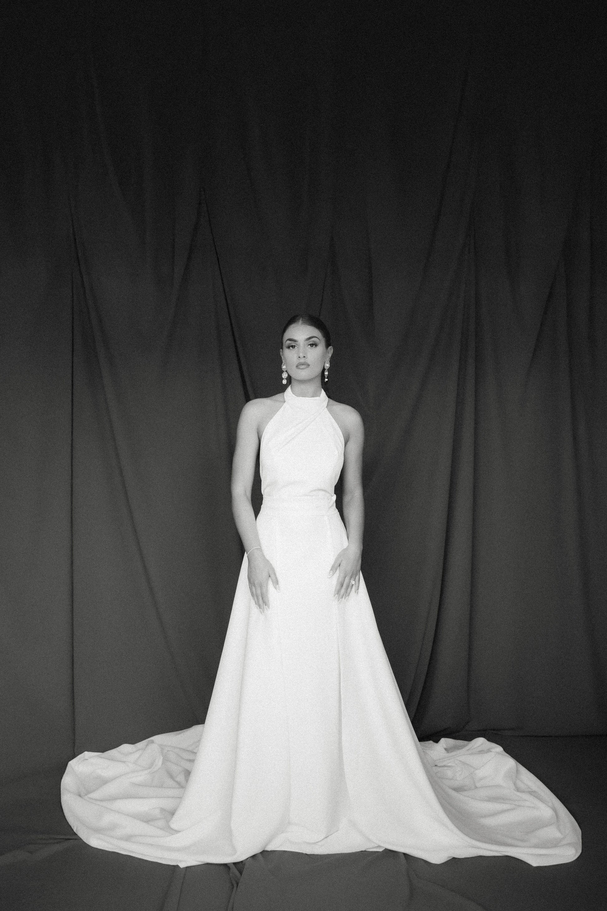 Sleek and sculptural, our half overskirt adds a minimalist twist to your bridal look. Designed to wrap partially around the dress, it adds elegant structure and visual interest without full coverage.