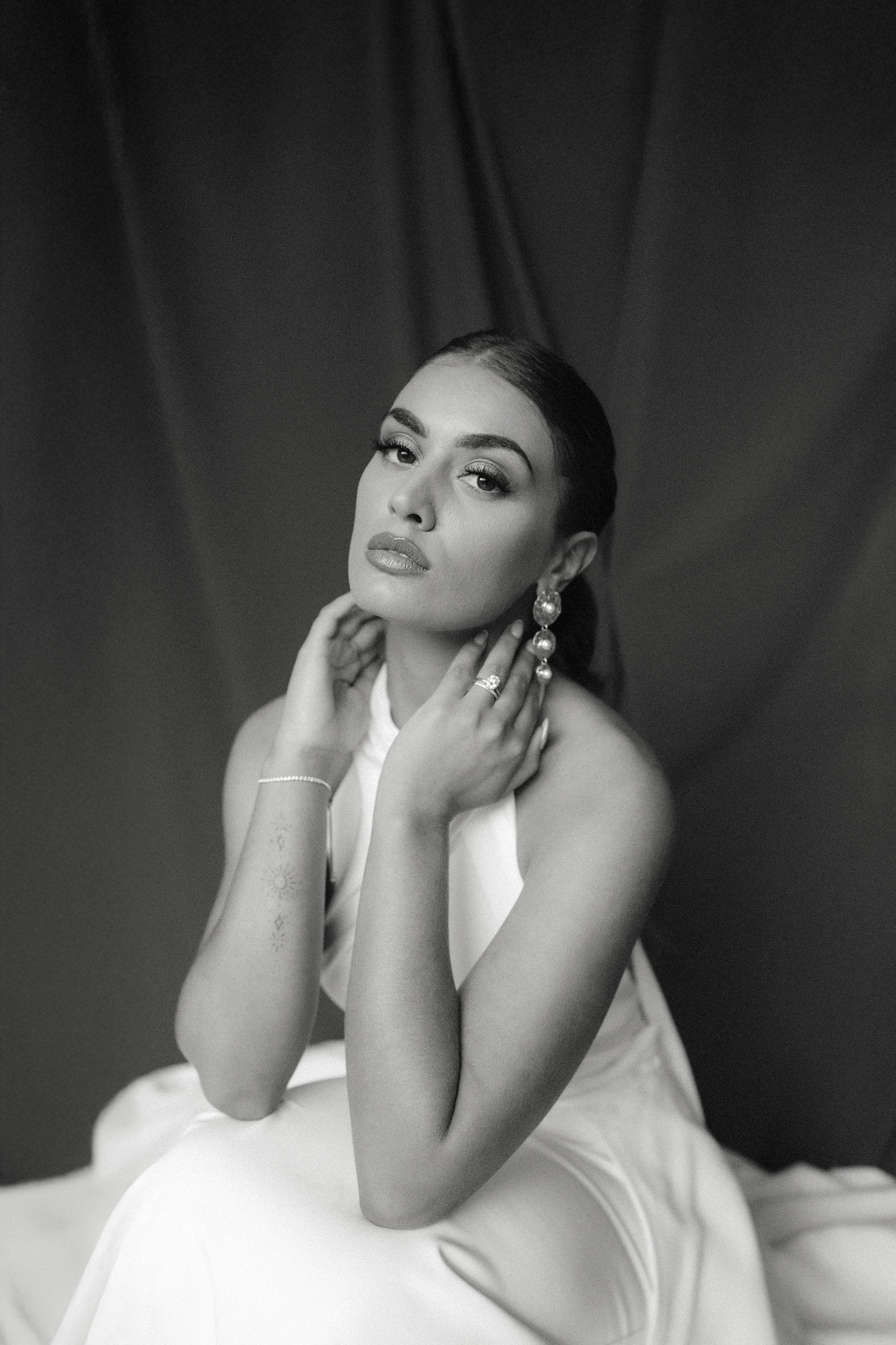 Ideal for modern brides who love a clean silhouette with a creative edge. Perfect for architectural gowns, fashion-forward looks, or adding sophistication to a sleek dress
