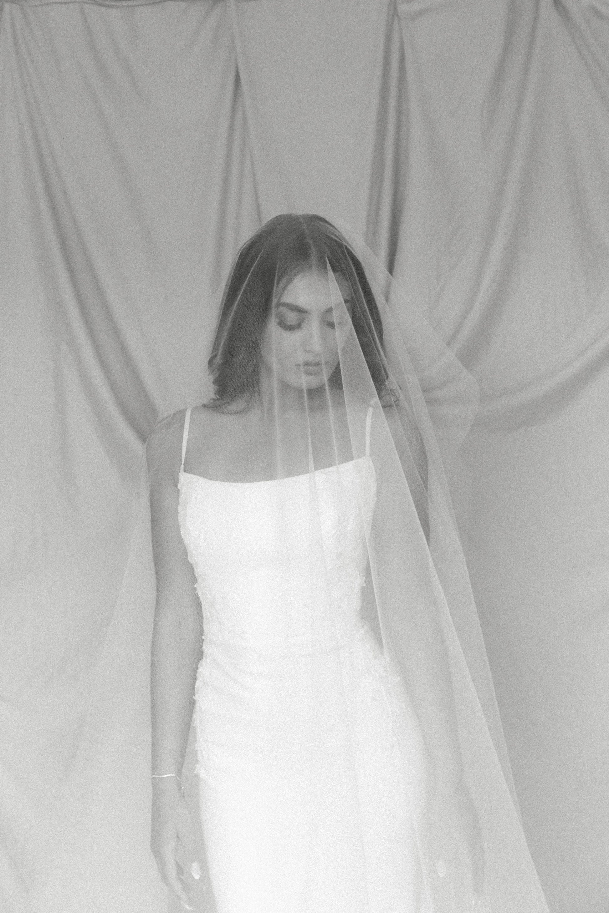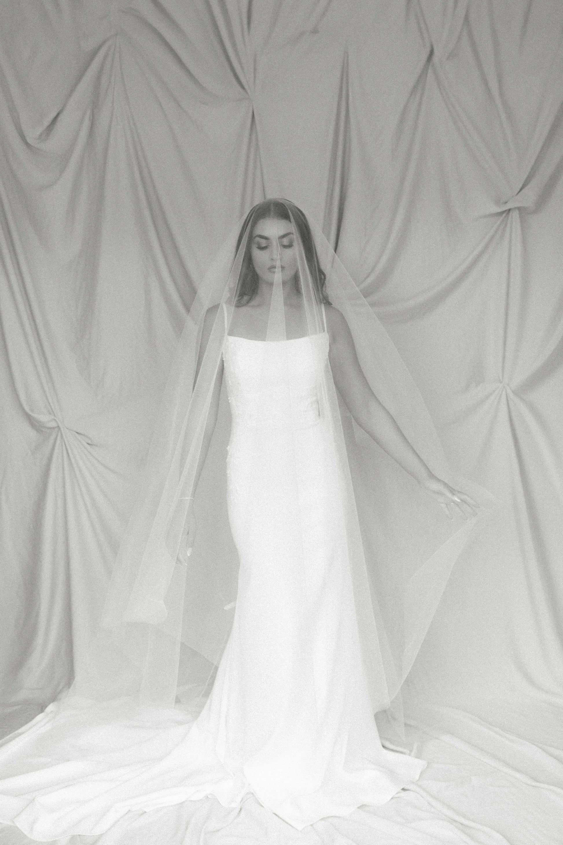 Structured, elegant, and statement-making — our hard tulle veil adds a touch of modern drama to your bridal look. Crafted from crisp ivory tulle, it holds its shape beautifully, creating a defined silhouette that frames your gown to perfection. Ideal for the bride who loves clean lines and architectural detail, this veil complements both minimalist and couture-style dresses. Perfect for bold entrances, editorial photos, and unforgettable “wow” moments.